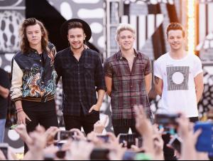 August 6, 201510 yr One Direction Performs on "Good Morning America" Harry Styles performs in a bomber jacket from Saint Laurent's spring-summer 2016 menswear collection. Liam Payne is a relaxed vision in a plaid shirt, skinny jeans, and a trendy hat. Louis Tomlinson is simple and easy in black jeans and Saint Laurent Vinyl T-Shirt. Niall Horan rocks a Paul Smith fringe shirt. August 5, 2015 thefashionisto.com