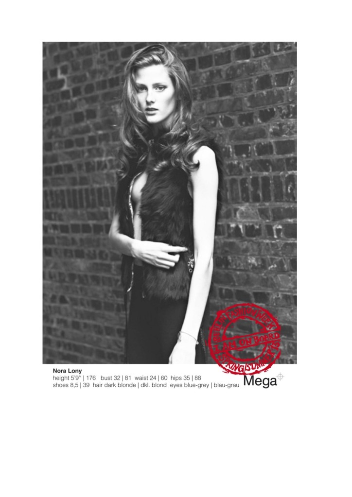 May 24, 201312 yr Nora Lony, 18 (IMG, Mega Models) aus Hamburg Entdeckung: Nora wurde auf der Straße angesprochen und hat sich daraufhin bei Mega Models in Hamburg vorgestellt Lieblingsmoment: Die Balenciaga-Show Die Zukunft: Sie würde gern Tiermedizin studieren und nebenbei modeln source: Vogue.de