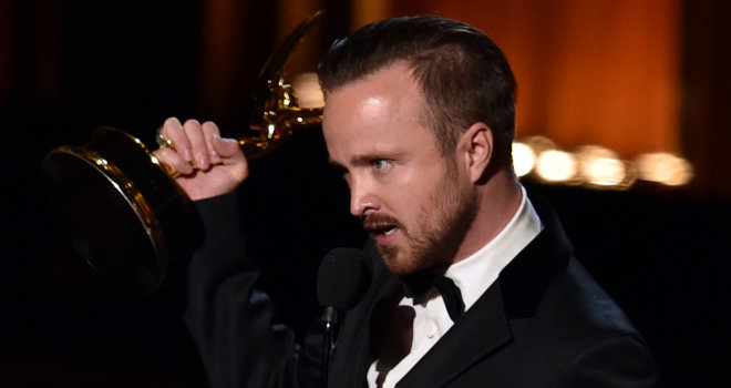 August 26, 201411 yr Author Hats off to Aaron Paul! The actor won his third Emmy for Outstanding Supporting Actor in a Drama Series for his role of Jesse Pinkman in "Breaking Bad," making him the only actor to have won the award three times! nydailynews.com Photo: Lester Cohen/WireImage. Published: 08/26/2014 1:10:47