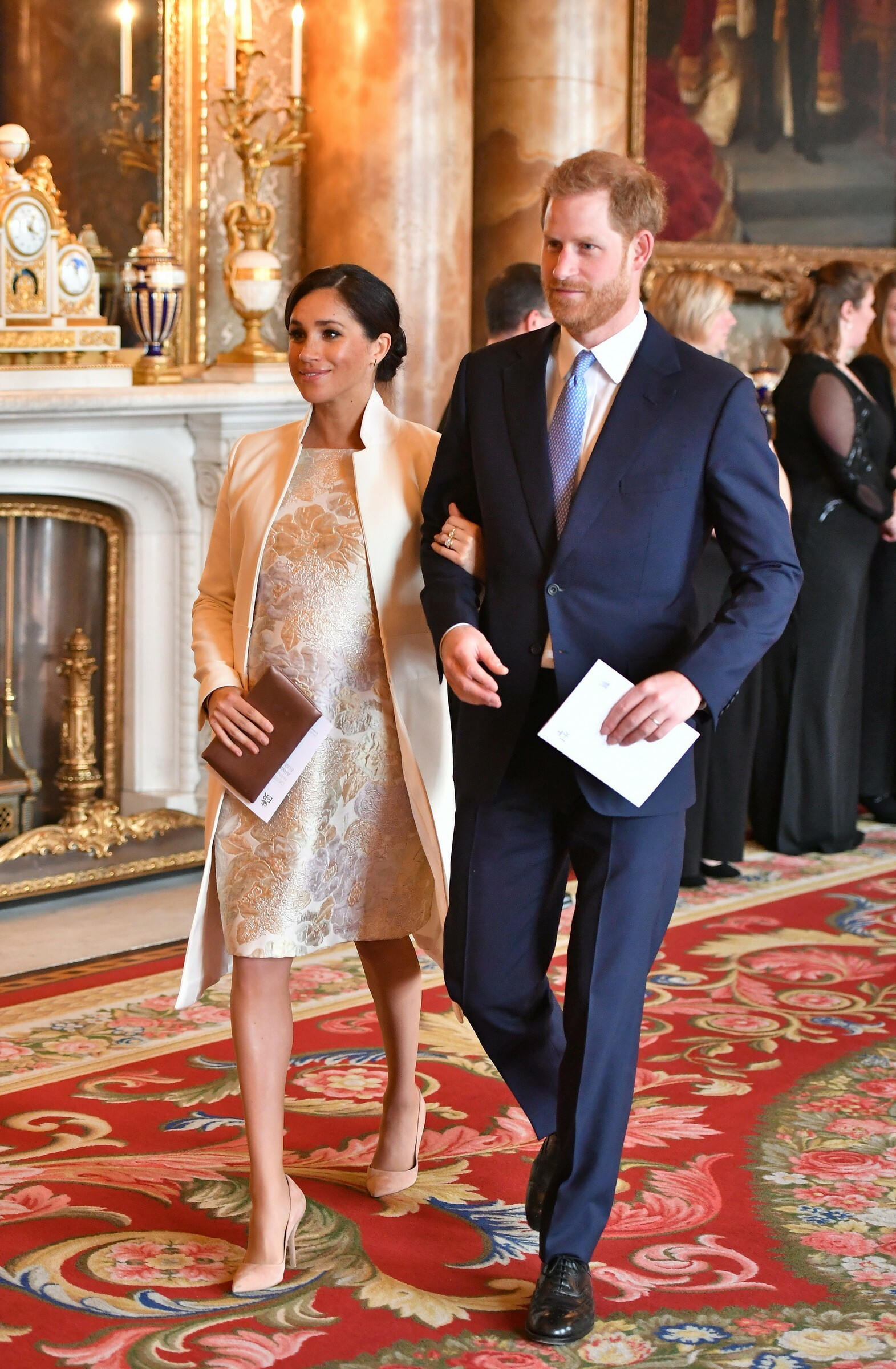 February 26, 20196 yr Meghan Markle and Prince Harry are wrapping up their trip to Morocco. The 37-year-old and 34-year-old royal couple, who are expecting their first child, made their final stop to meet with King Mohammed VI on Monday evening (February 25) at his residence in Rabat, Morocco. Meghan is wearing a Carolina Herrera dress, Gianvito Rossi shoes, Cartier earrings and carrying a Dior clutch.
