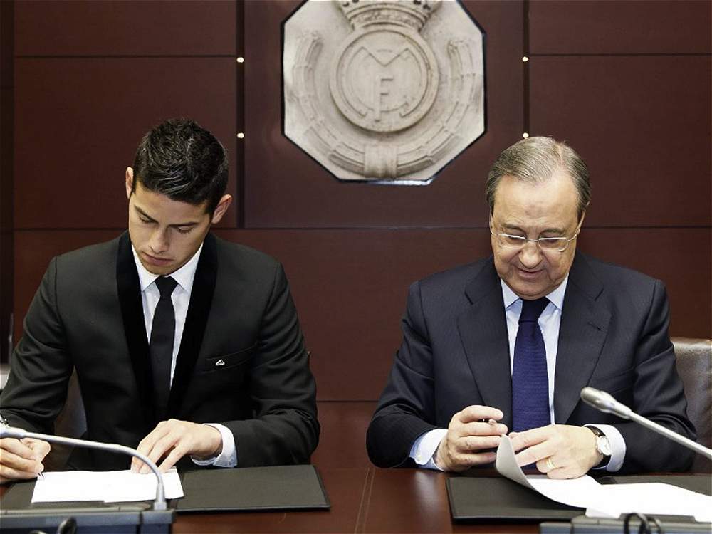 July 23, 201411 yr Author Real Madrid signs James Rodriguez to 6-year contract The Galácticos just keep doing what they do. Real Madrid officially announced the signing of Colombian star James Rodriguez on Tuesday morning, inking the 23-year-old to a six-year contract. While the club did not reveal the fee brokered with AS Monaco for the services of the World Cup's Golden Boot winner, multiple reports suggest the French side received something in the region of €80 million. Rodriguez, who only moved to Monaco last summer from Porto in a deal worth €45 million, led all players with six goals at the World Cup in Brazil, including the remarkable tally against Uruguay that was voted the best of the tournament. Fans will get their first look at the Colombian in the famous all-white kit later today, as Rodriguez will be unveiled in typical grandiose fashion at the Santiago Bernabeu. Real Madrid, coming off a season in which they signed Gareth Bale for a world record transfer fee and then went on to win the Champions League, have now added arguably the two most impressive players from the World Cup, with Rodriguez joining German midfielder Toni Kroos in the Spanish capital. To say that manager Carlo Ancelotti will have plenty of options this season would be quite the gross understatement: That doesn't even take into account the likes of Luka Modric, Xabi Alonso, Sami Khedira, Jese and perhaps most notable of all, Angel di Maria and Isco. The latter two are both expected to be sold this summer, despite the fact that the Spaniard only joined the club last summer from Malaga for €30 million. Such is life at Real Madrid.Suffice it to say, anything less than a repeat victory in the Champions League and a league crown to go with it would be viewed as a massive disappointment this season. The move also adds yet another superstar to what was already the most impressive list of players compiled for any match on the planet. This season's Clasico(s) against Barcelona will be quite the spectacle. @thescore.com