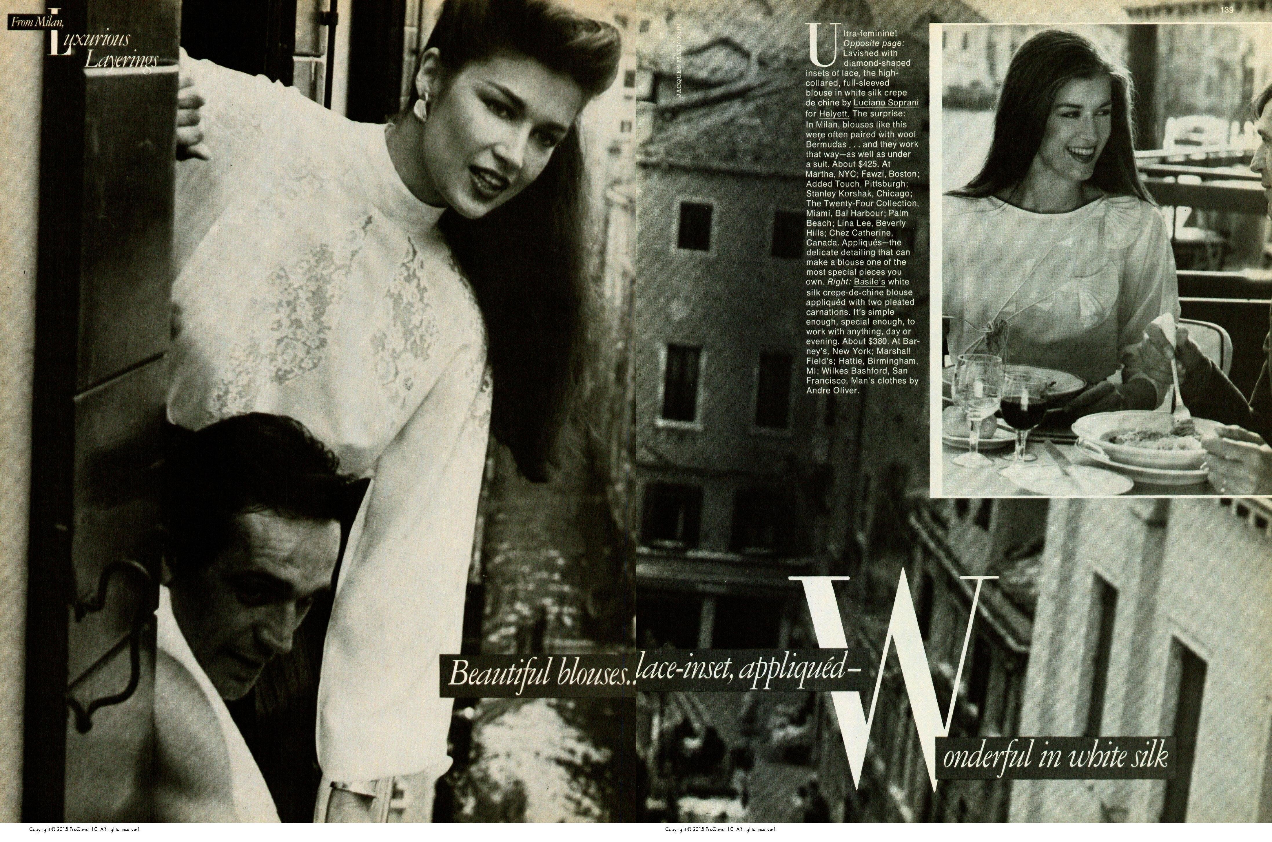 October 14, 20241 yr Author US Harper's Bazaar July 1981 "From Milan, Luxurious Layerings" Models: Clotilde Holby & Unknown Photographer: Jacques Malignon Harper's Bazaar Archive via blueorchid at The Fashion Spot
