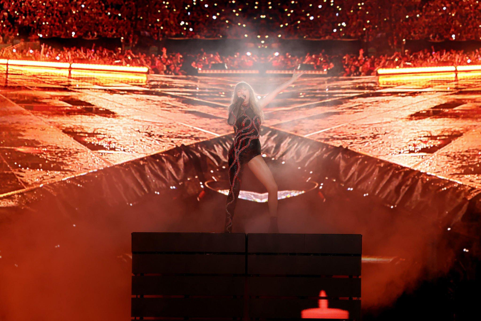 April 29, 20232 yr The Eras Tour at Mercedes-Benz Stadium on April 28, 2023 in Atlanta, Georgia. Red. 1989.
